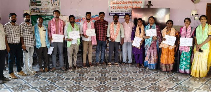 జనంన్యూస్ మార్చి 14 ఎలిగేడు మండలం ఎలిగేడు మండల పరిధిలో ఉన్న అన్ని గ్రామాలలోని నూతనంగా ఎన్నికైన వార్డు సభ్యులకు శిక్షణ ముగింపు కార్యక్రమము ఎం పీ డి వో భాష్కర్ రావు ఆధ్వర్యములో మండల కేంద్రములో ఉన్న రైతు వేదికలో శిక్షణ కార్యక్రమాన్ని నిర్వహించారు వార్డు సభ్యులు ఐదు రోజుల నుండి నుండి జరుగుతున్న శిక్షణ ద్వారా గ్రామాల వార్డు సభ్యుల విధులు బాధ్యతలు గ్రామాల అభివృద్ధిలో వార్డు సభ్యుల పాత్ర ,సర్పంచ్ లతో కలిసి పని చేయాలని తెలిపారు వార్డు సభ్యులకు శాలువాలు కప్పి ఘనంగా సన్మానించారు శిక్షణ పొందిన సర్టిఫికెట్ లు అందజేశారు ఈ కార్యక్రమములో ఎం పీ వో కిరణ్ ,అన్ని గ్రామాలకు చెందిన వార్డు సభ్యులు సర్పంచ్ లు ట్రైనర్లు సురేష్ ,శివ,సాగర్ ,రణధీర్ ,కార్యదర్శులు ,గ్రామ పంచాయతీ సిబ్బంది తదితరులు పాల్గొన్నారు